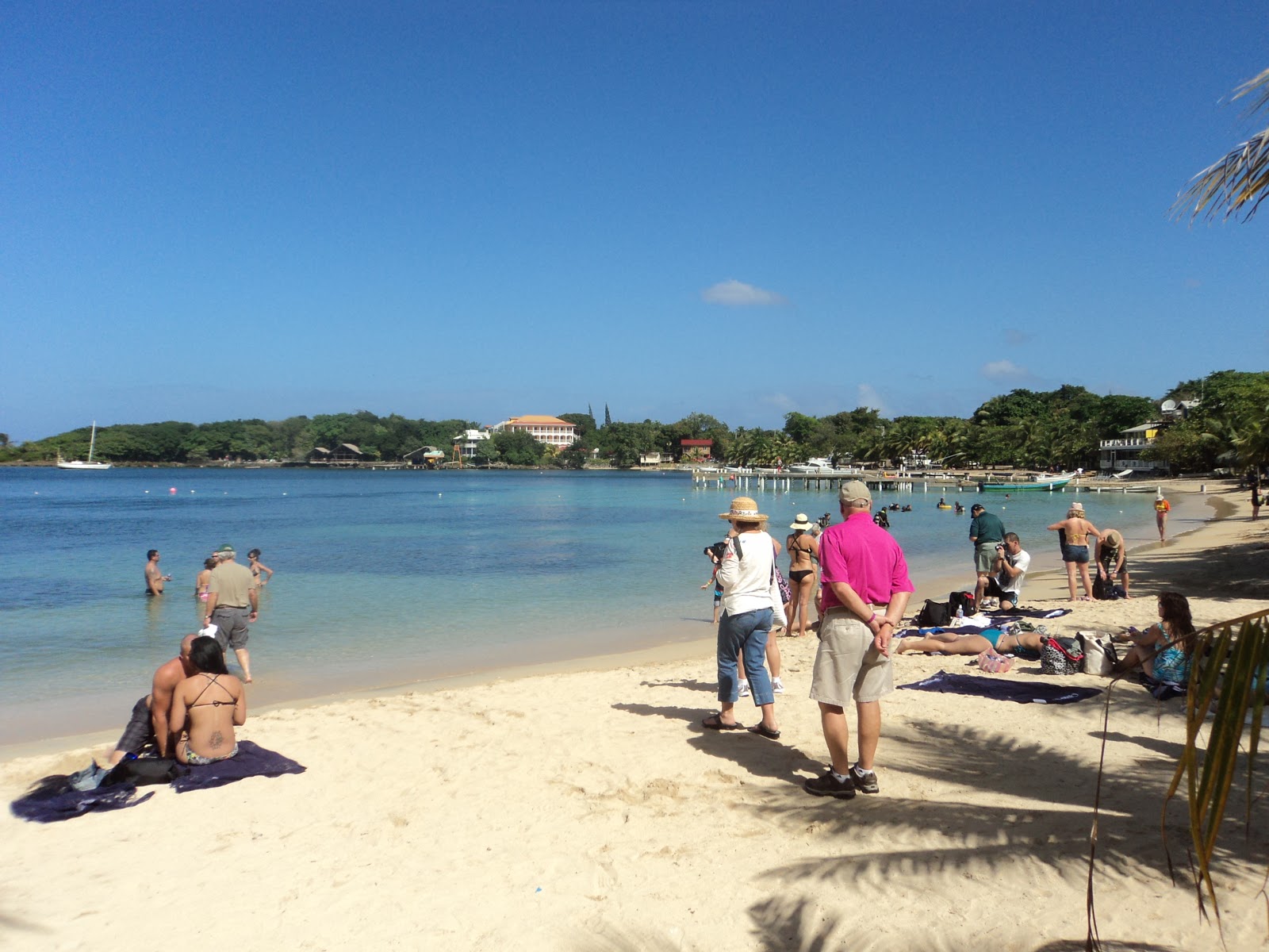 Thursday: We docked in Mahogany Bay on the island of Roatan, which is part of Honduras. This was my second time being here. We were here from 7 AM to 3 PM. We went on the "Best of the Island Tour," which had a late start because the tour guide was late. We drove east on the island to The View. We drove to Punta Gorda, where some kids were holding a big snake on a hook, they planned to cook and eat. We drove to the West Bay and went through the shops and stood on the beach. Throughout the tour, we saw many free roaming dogs sleeping by the street. After the tour, we walked through the port shops. Dad bought a wooden bench, carved with homes, and mom bought a Mahogany wooden carved bowl. We ate lunch on the lido deck. I had Chicken Tacos and the Key Lime Pie. The captain made an announcement about high winds and having to shut off the outer decks. After our nap, Dad came back to our room and asked if we had felt the ship list again like it had done on the Liberty last year. We said no, wondering why there wasn't an announcement from the Cruise Director. We watched "The Game of Love," we had missed, on TV. For dinner, I had the fruit plate, shrimp and fries, Chocolate/Raspberry/Vanilla cake. We went to karaoke and Dad got up and sang "Kokomo" by the Beach Boys. We then went and saw the Divas Show in the Amber Palace. Mom was sitting in her wheelchair under the fog machine. Little pieces of plastic kept landing on her and burning her skin. She moved back a row and after the show, she went to Guest Services and complained.